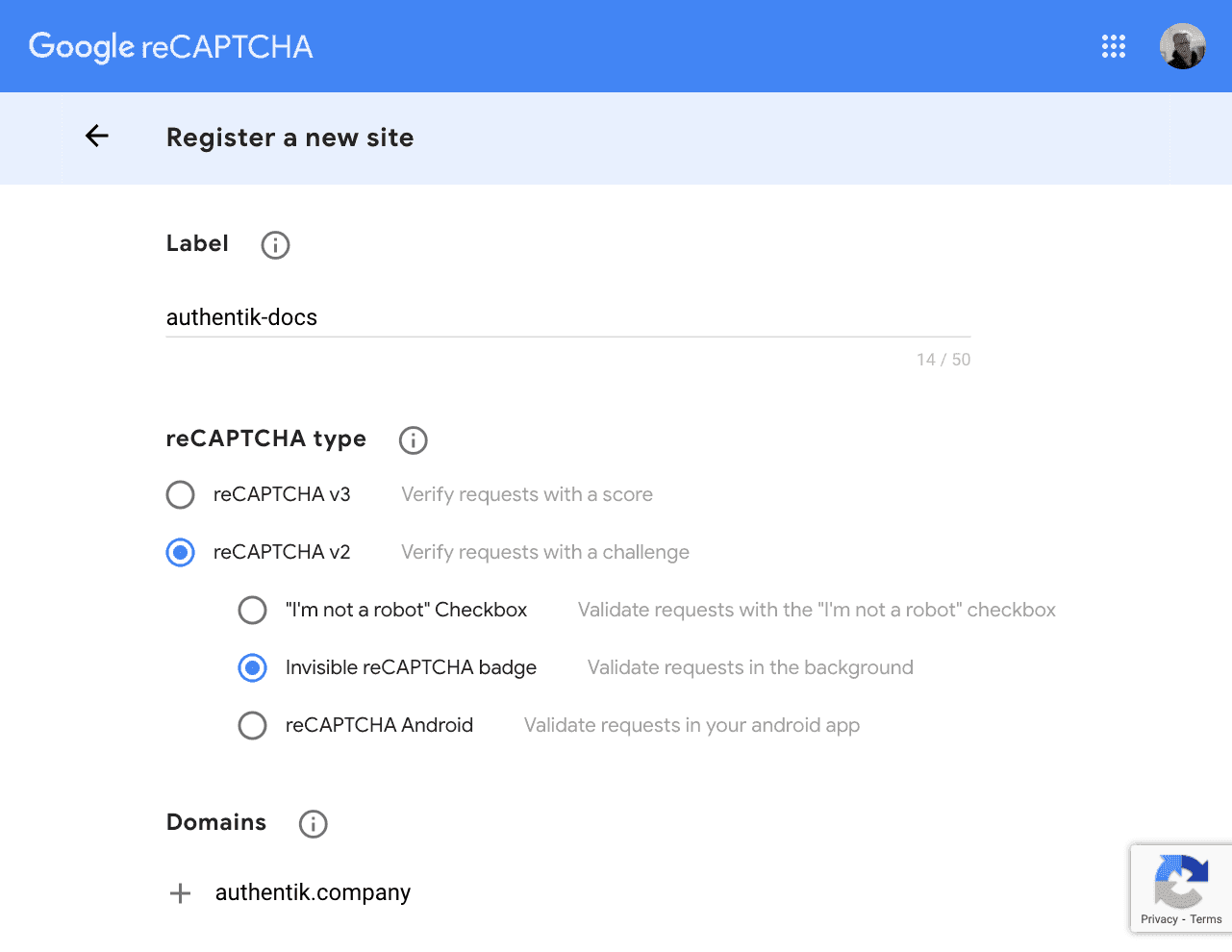 - Interactive: Enabled when using reCAPTCHA v3